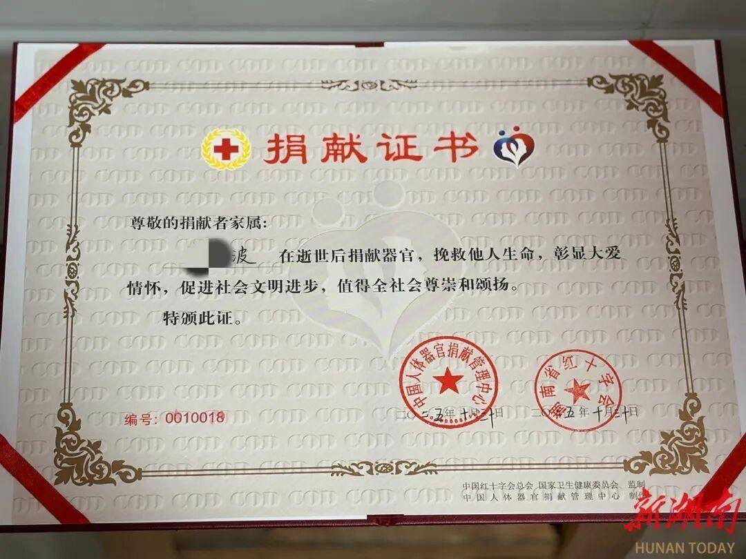 目前,颜剑波的器官捐献手续已由湖南省红十字会协调完成。当他的器官在他人身体里继续“工作”,这场跨越生命的“接力赛”,将让爱与勇气延续。